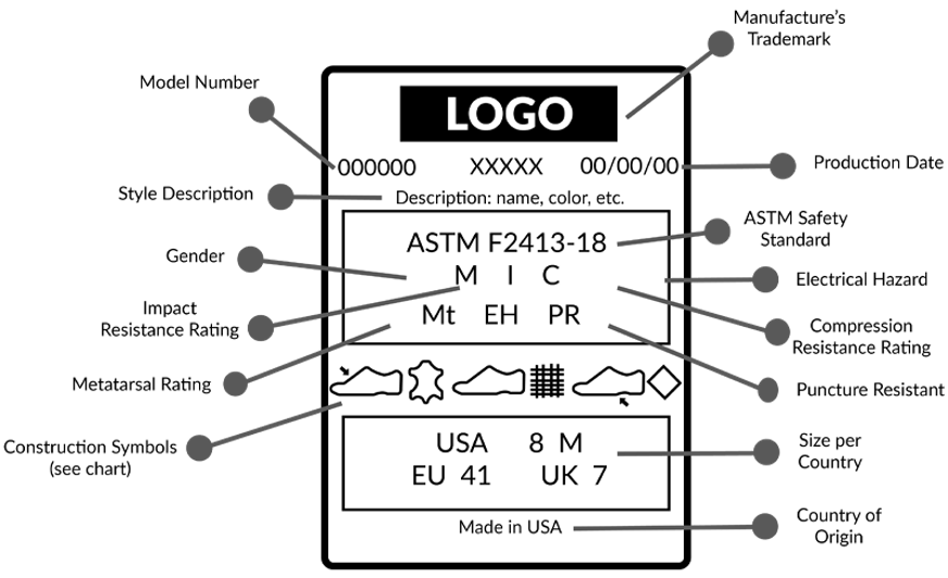 Some labels may also include additional codes for metatarsal protection or static-dissipative properties, depending on the model.